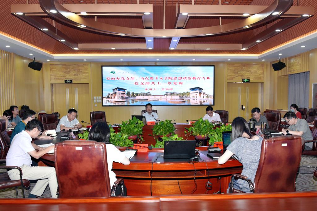 6月30日下午,为庆祝中国共产党成立99周年,党政办党支部、马克思主义学院思想政治教育专业党支部在成均楼B301会议室举行共上一堂党课暨支部“手拉手”共建活动,校党委书记王洪彬参加并指导活动。党政办公室全体党员、思想政治教育专业党支部教工党员参加会议,思想政治教育专业党支部学生党员、积极分子和永信班学员,2019级思政研究生班学生以视频形式参加会议。会议由党政办党支部书记李柯主持。