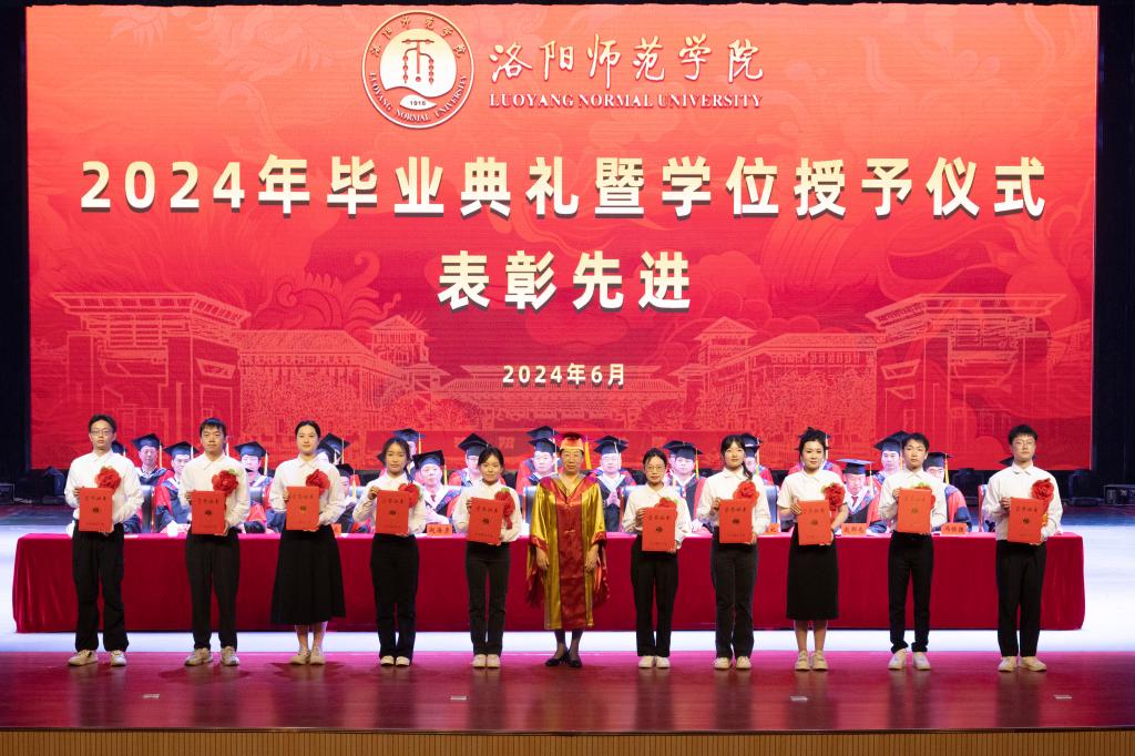 郭海明首先对2024届毕业生顺利完成学业表示祝贺,回顾了同学们在洛师学习生活中的收获与成长。他谆谆寄语毕业生,希望同学们胸有“大志”,做有理想的新时代好青年,练就“不畏浮云遮望眼”的慧眼,保持“咬定青山不放松”的定力,厚植“愿得此身长报国”的情怀;心怀“大我”,做敢担当的新时代好青年,以永不懈怠的精神状态、永不停滞的奋进姿态,永不自满的向上心态,努力成长为可堪大用、能担重任的栋梁之才;肩扛“大任”,做能吃苦的新时代好青年,继承和发扬老一辈不怕吃苦的精神,摒弃骄娇二气,努力创造无愧青春、无愧时代的优秀业绩;脚行“大道”,做肯奋斗的新时代好青年,时刻坚守强国志向、练就过硬本领,以实干书写人生,用奋斗镌刻荣光。