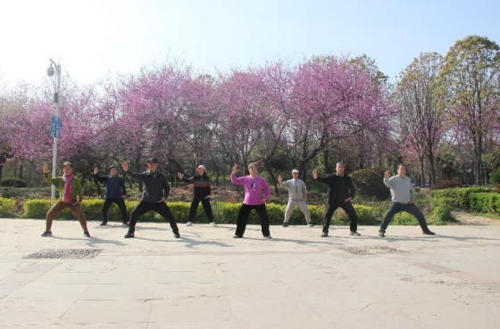 老同志们自由结合三五成群的漫步在花海间、湖边、林荫小道,他们笑意盈盈,畅谈着美好生活,看到美景流连忘返,不时驻足留影。太极拳爱好者们更是相聚在一起开始交流展示。看着如此美好和谐的画面不由让人发出“洛阳三月花如锦,多少工夫织得成”的感慨。