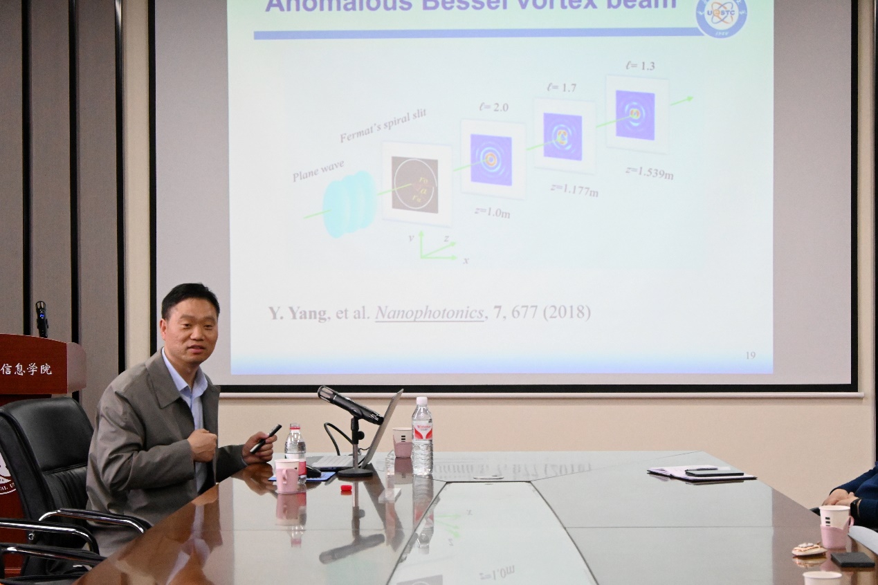 为深化学生对前沿光学领域的认知,激发科研创新热情,4月3日下午,立雪书院学生社区在物理楼305会议室举办“涡旋光的产生、测量及应用”专题学术活动。本次活动由物理与电子信息学院副院长杨数强主持,电子科技大学物理学院教授杨元杰主讲,书院学生踊跃参加。