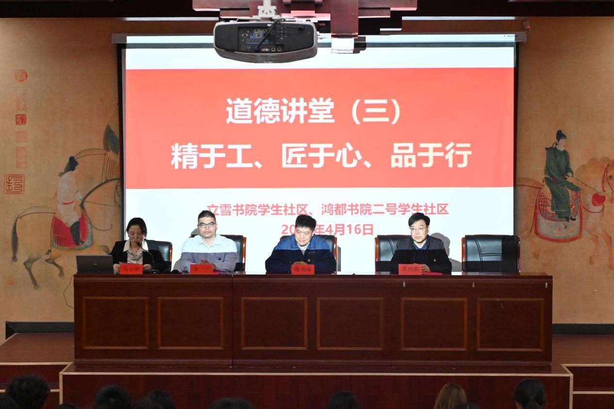 为提升学生综合素养,强化责任担当,4月16日下午,立雪书院学生社区与鸿都书院二号学生社区在G5-102共同举办第三期大学生道德讲堂。河南省劳动模范、中国华能集团公司大工匠、华能沁北发电有限责任公司高级工程师路旭峰主讲。立雪书院学生社区党委副书记高小静主持。立雪书院和鸿都书院400余名学生到场聆听学习。