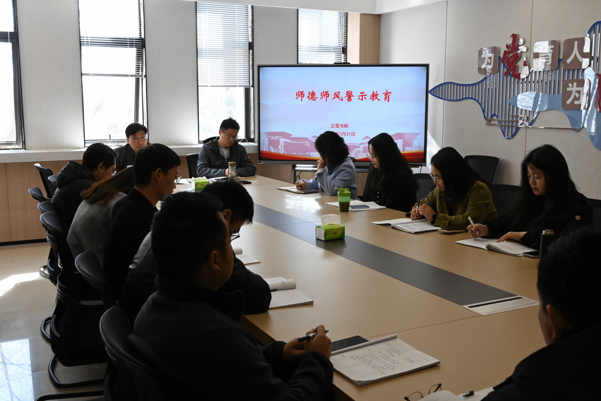 3月21日,立雪书院学生社区在初心厅召开师德师风警示教育暨师德师风专题学习教育会。书院领导班子成员、全体育人导师参会,会议由立雪书院学生社区院长骆方成主持。