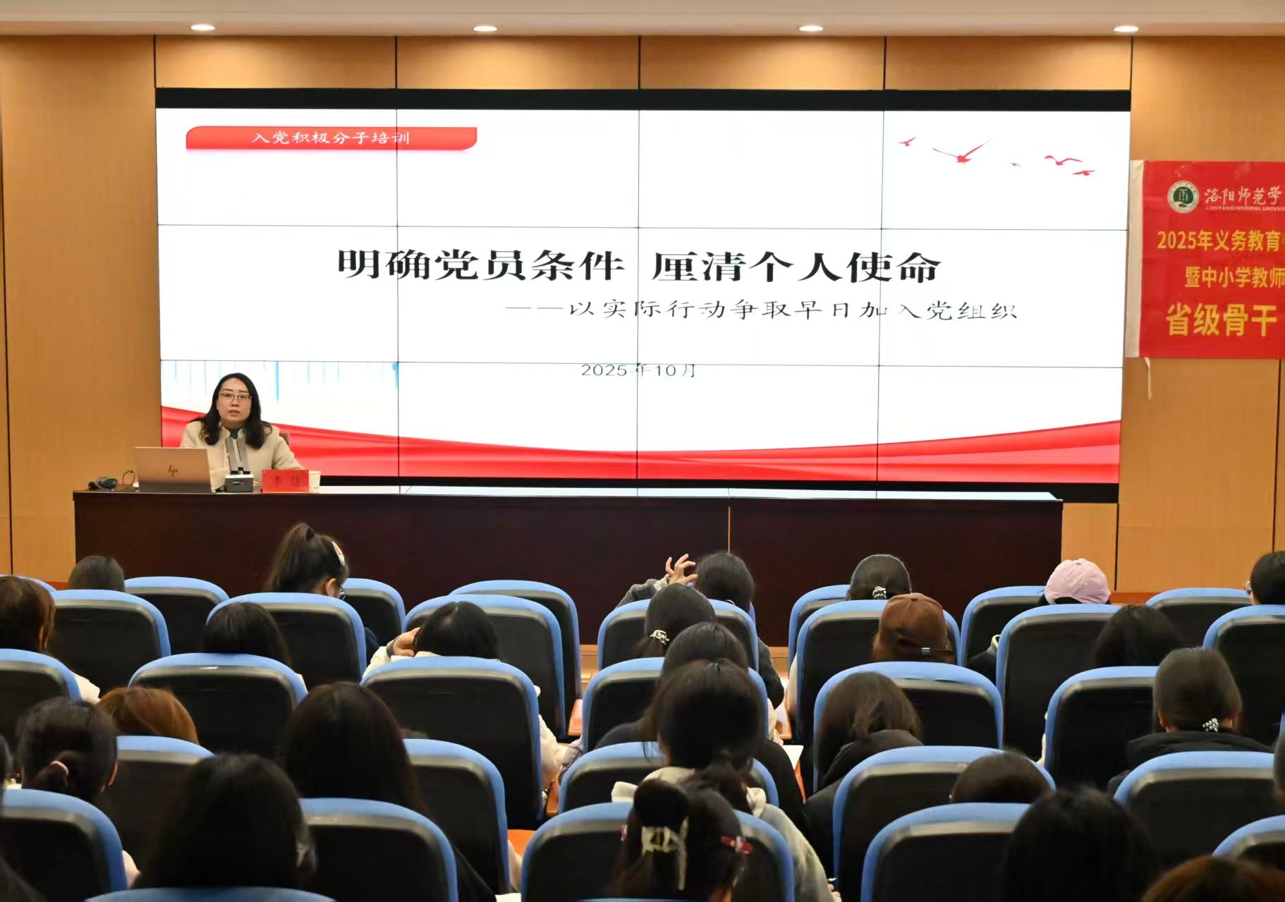 10月27日晚,立雪书院学生社区在物理楼102报告厅开展“明确党员条件 厘清个人使命”主题党课培训。立雪书院学生社区党委副书记李倩主讲,书院2025年下半年全体入党积极分子参与。