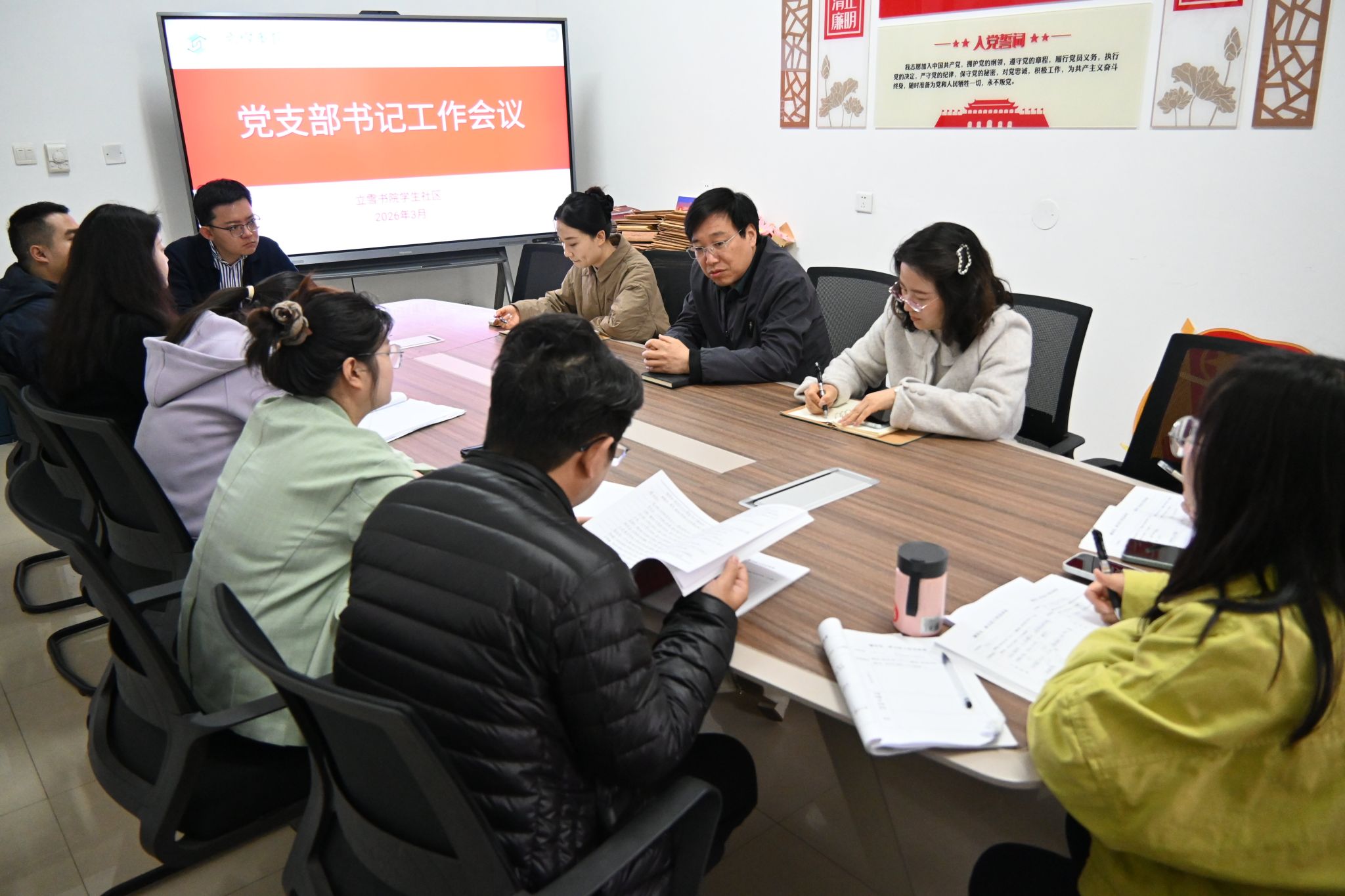 会议指出,各党支部要严格对标校党委的工作部署,切实提高政治站位,全面夯实党建工作责任。要严把党员发展程序关和材料审核关,确保党员发展质量;要持续加强党员队伍与学生干部队伍建设,依托学习教育和“三会一课”,不断强化党员教育管理;要精心策划开展富有教育意义的党日活动,推动党建工作与安全教育、社团活动、创新创业等深度融合,形成协同育人合力。