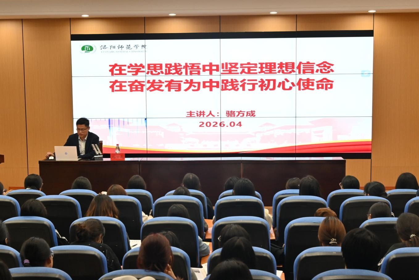 为扎实推进党员发展工作,切实提升入党积极分子思想政治素养,4月10日晚,立雪书院学生社区在物理楼102报告厅举办以“在学思践悟中坚定理想信念,在奋发有为中践行初心使命”为题的党课培训,立雪书院学生社区院长骆方成主讲,2026年上半年入党积极分子参与。