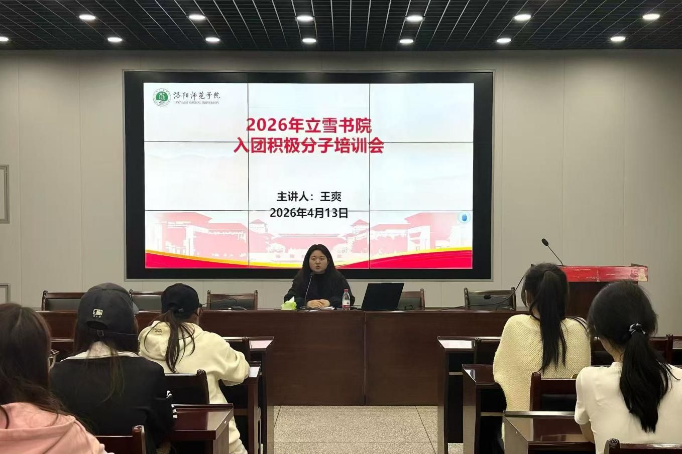 为深入学习贯彻党的二十大精神,加强对入团积极分子的思想引领,4月13日晚,立雪书院学生社区在化学楼215开展“奋斗者·正青春”入团积极分子培训会。培训会由立雪书院学生社区团委副书记王爽主讲,2026年上半年全体入团积极分子参与。