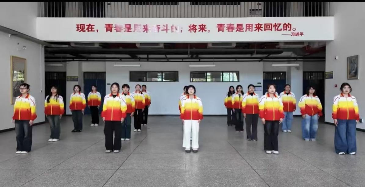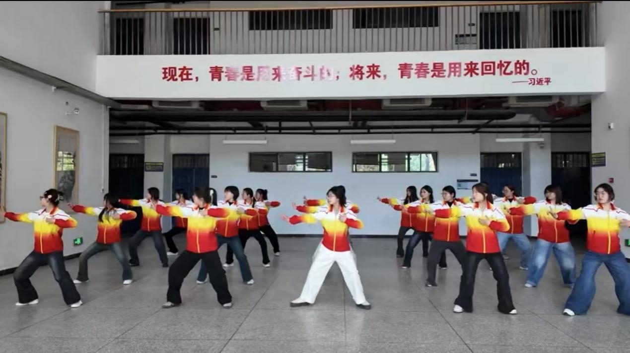 活动现场,同学们身着统一服装,身姿挺拔。在舒缓悠扬的音乐声中,同学们精神饱满,动作舒展流畅,充分展现了八段锦刚柔并济、动静结合的独特魅力。她们的每一个眼神都透着专注,每一次抬手、踢腿都尽显力量与美感,充分展现出青春的朝气与活力,也将八段锦独特的韵味诠释得恰到好处。