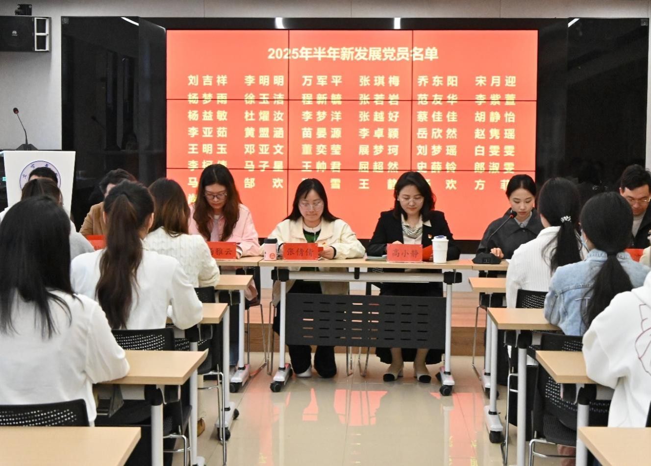 高小静代表书院向刘吉祥等43名新党员表示祝贺。她指出,党员身份是“终身奋斗证”,入党是新起点,党徽是警示牌,誓言是行动指南。她勉励新党员将“小我”融入“大我”,做书桌前的奋斗者、时代里的追光者,为党和人民贡献青春力量。