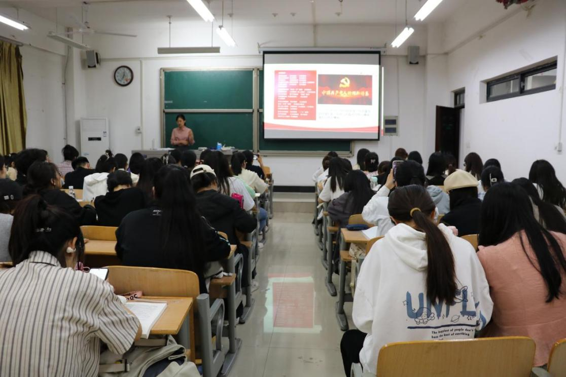 4月16日晚,校团委副书记高莹在外国语学院A1-404为马克思主义学院和外国语学院2024年上半年入党积极分子、预备党员开展党课培训。