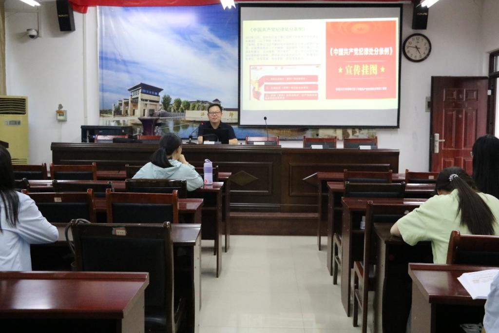随后,他结合工作实际强调,广大党员要在服务党和国家大局中学习领会《条例》的主旨要义,将其内化于心、外化于行,党员干部要敢于善于斗争,严格精准执纪。最后,他结合《条例》,向新时代大学生提出要提高素养、树立榜样、遵守纪律的要求。
