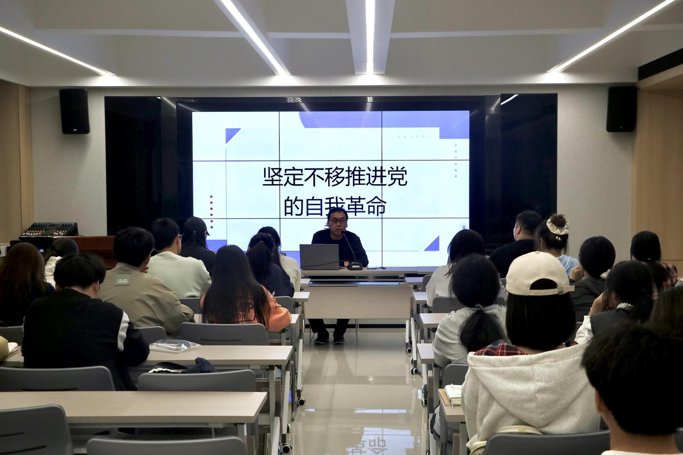 关强以“坚定不移推进党的自我革命”为主题,结合党的二十大精神,向同学们详细讲解了勇于自我革命是中国共产党区别于其他政党的显著标志、自我革命精神是党永葆青春活力的强大支撑等内容。他引用习近平总书记在二十届中央纪委三次全会上的讲话,向大家阐述了“要坚持解放思想、实事求是、与时俱进、守正创新,不断进行实践探索和理论创新,不断深化对党的自我革命的规律性认识,把党的自我革命的思路举措搞得更加严密,把每条战线、每个环节的自我革命抓具体、抓深入。”他强调全面从严治党永远在路上,党的自我革命永远在路上,必须持之以恒推进全面从严治党。执纪者必先守纪,律人者必先律己,作为入党积极分子,大家要认真学习党史,了解党情,高标准严要求来规范自身的言行举止,不断提升自身的先进性和纯洁性。