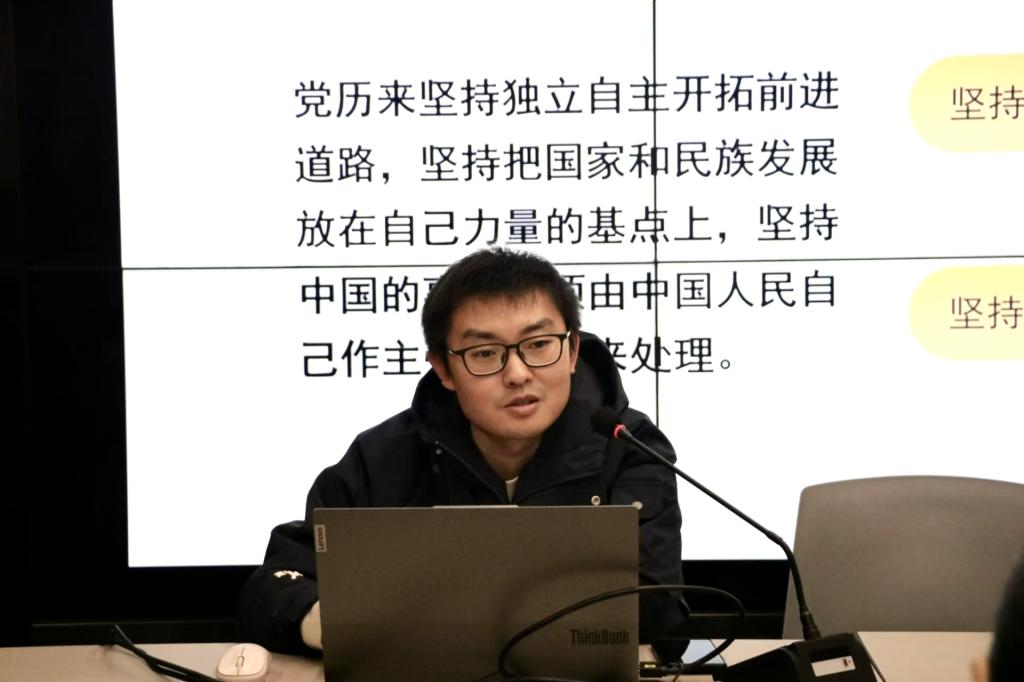 刘思嘉以“了解百年党史,汲取奋进力量”为主题,围绕“回顾百年奋斗历程”“长期奋斗的意义”“历史带来的经验”三个方面展开培训,重点阐述了中国共产党的光辉历程与共产党人的初心使命。他结合党的二十大精神,阐述了中国共产党领导人民从站起来,富起来到强起来的伟大飞跃,以及实现中华民族伟大复兴的伟大蓝图。最后,他鼓励同学们要传承革命精神,做有理想、敢担当、能吃苦、肯奋斗的新时代好青年。