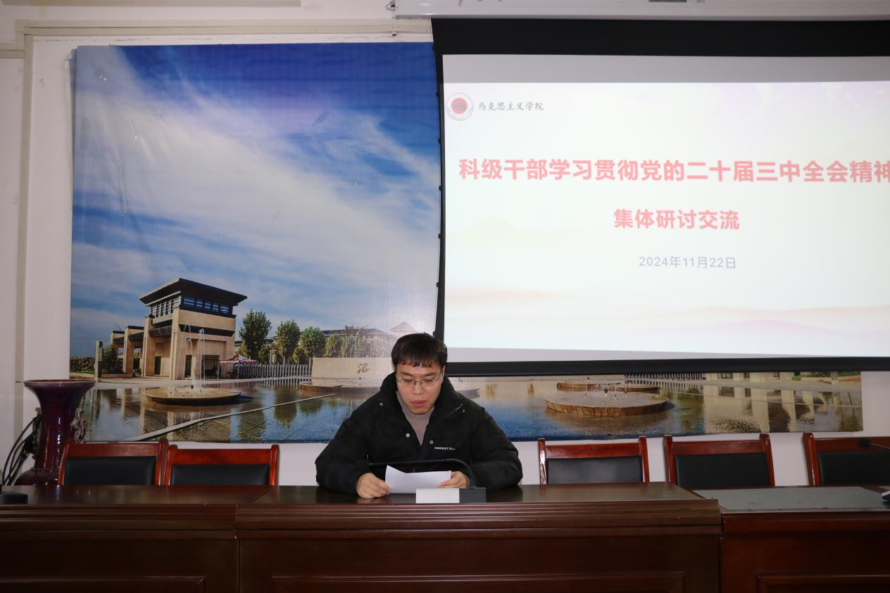 为深入学习贯彻党的二十届三中全会精神,全面提升科级干部队伍理论素养与业务能力,近日,马克思主义学院党委开展为期四天半的专题培训会议。此次培训由党委书记吕鹏主持,科级干部参加学习。