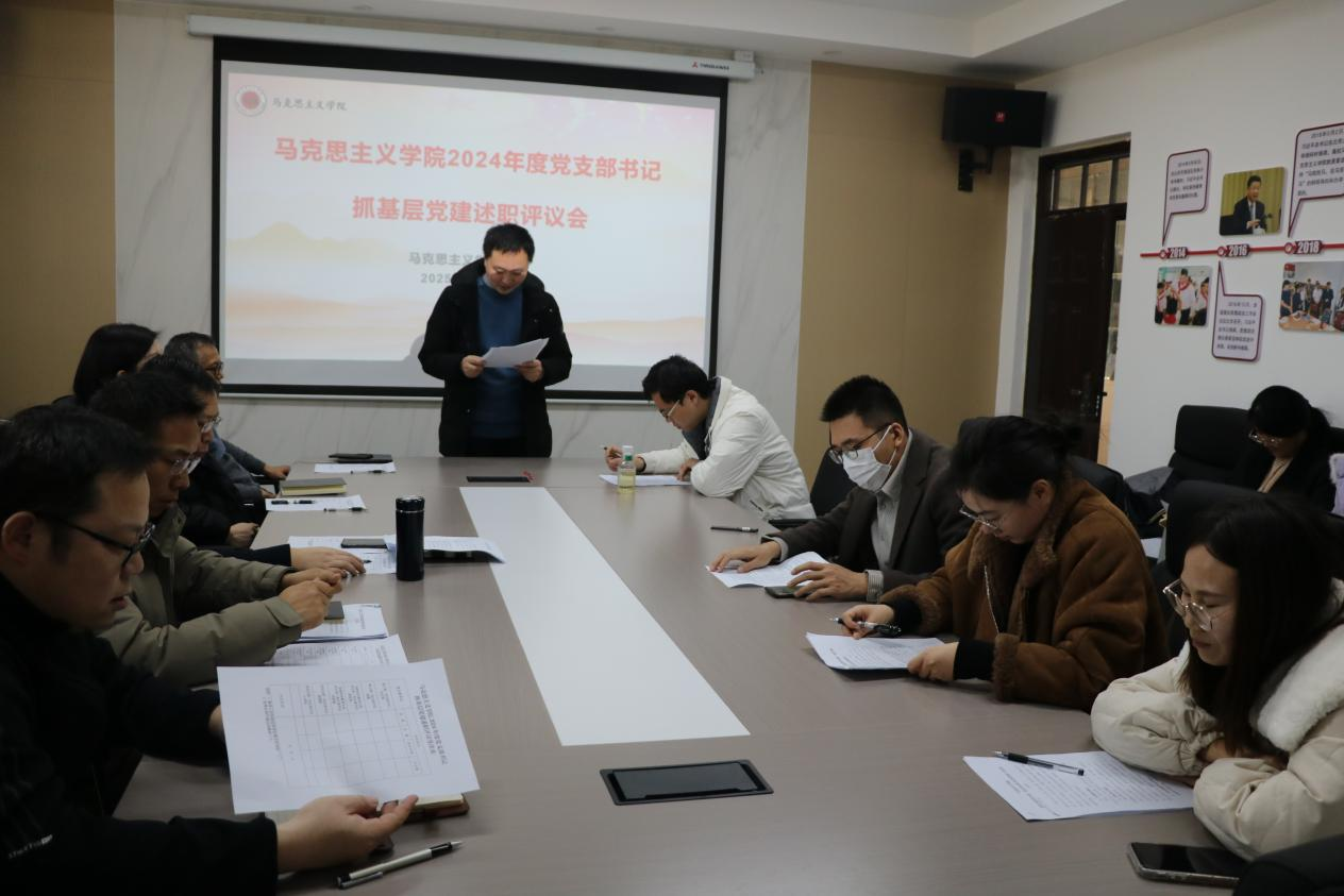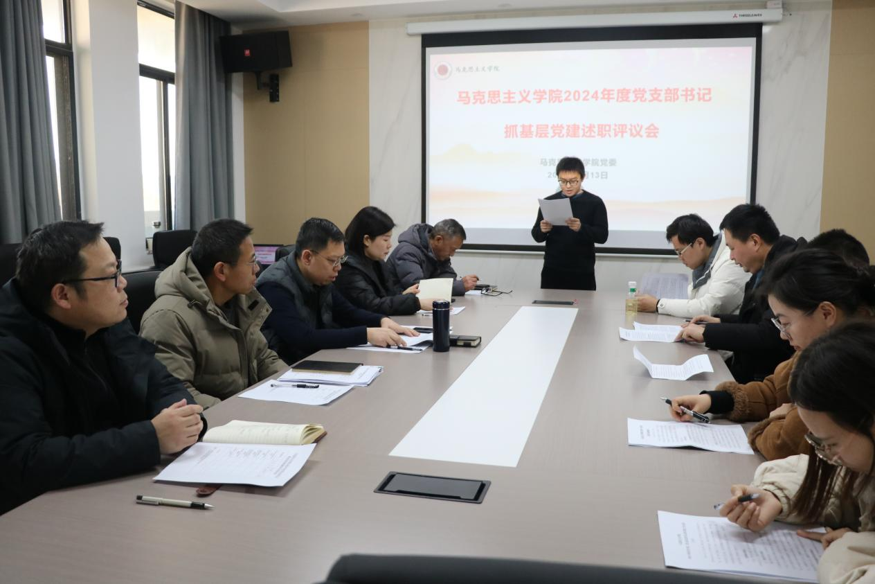 1月13日下午,马克思主义学院召开2024年度党支部书记抓基层党建工作述职评议交流会。学院党委委员、各党支部书记、党员代表10余人参加会议,会议由学院党委书记吕鹏主持。