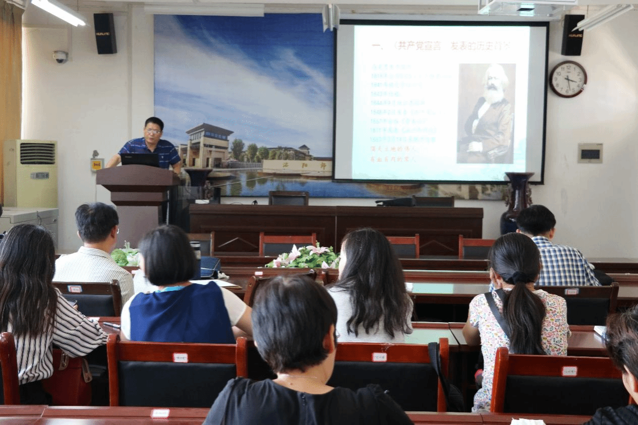 为深入学习习近平总书记在马克思诞辰200周年纪念大会的讲话精神,5月31日,吕斌教授在A3-305会议室为我院教师进行了《共产党宣言》宣讲,即真理与道义的制高点。本次会议由副书记王磊主持,我院全体教师参加。