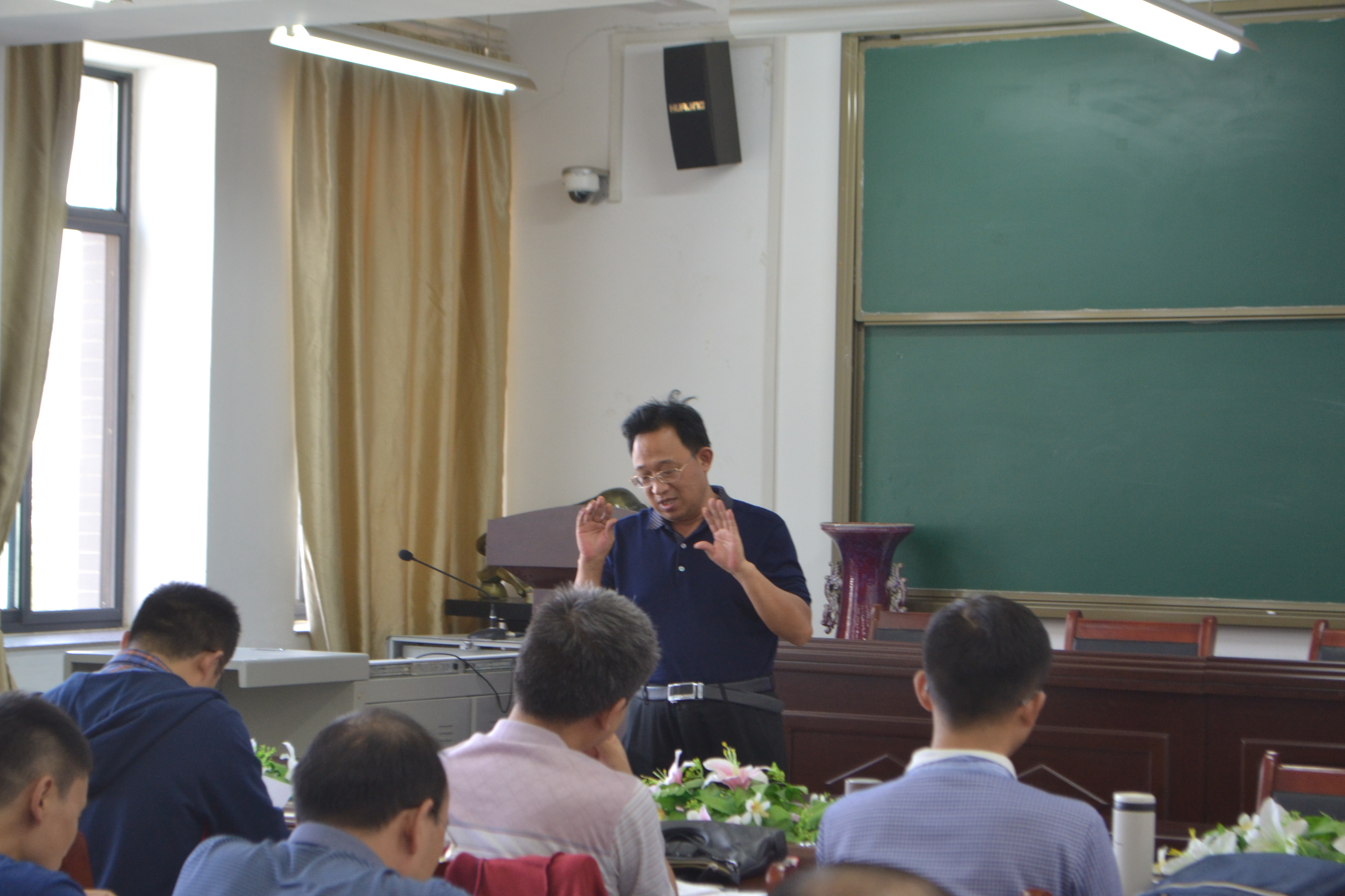袁杰老师首先于305会议室为全体教师谈到习近平总书记726讲话中提出的“四个伟大”,即:进行伟大斗争,建设伟大工程,推进伟大事业,建设伟大梦想。接下来,针对这四个方面展开讲述。对于如何进行伟大斗争,袁杰老师讲到“关键在党,关键在人”,全党要以更宽广的视野、更长远的眼光思考和把握国家未来发展面临的一系列重大问题,同时还必须要时刻准备应对重大挑战、抵御重大风险、克服重大阻力、解决重大矛盾。