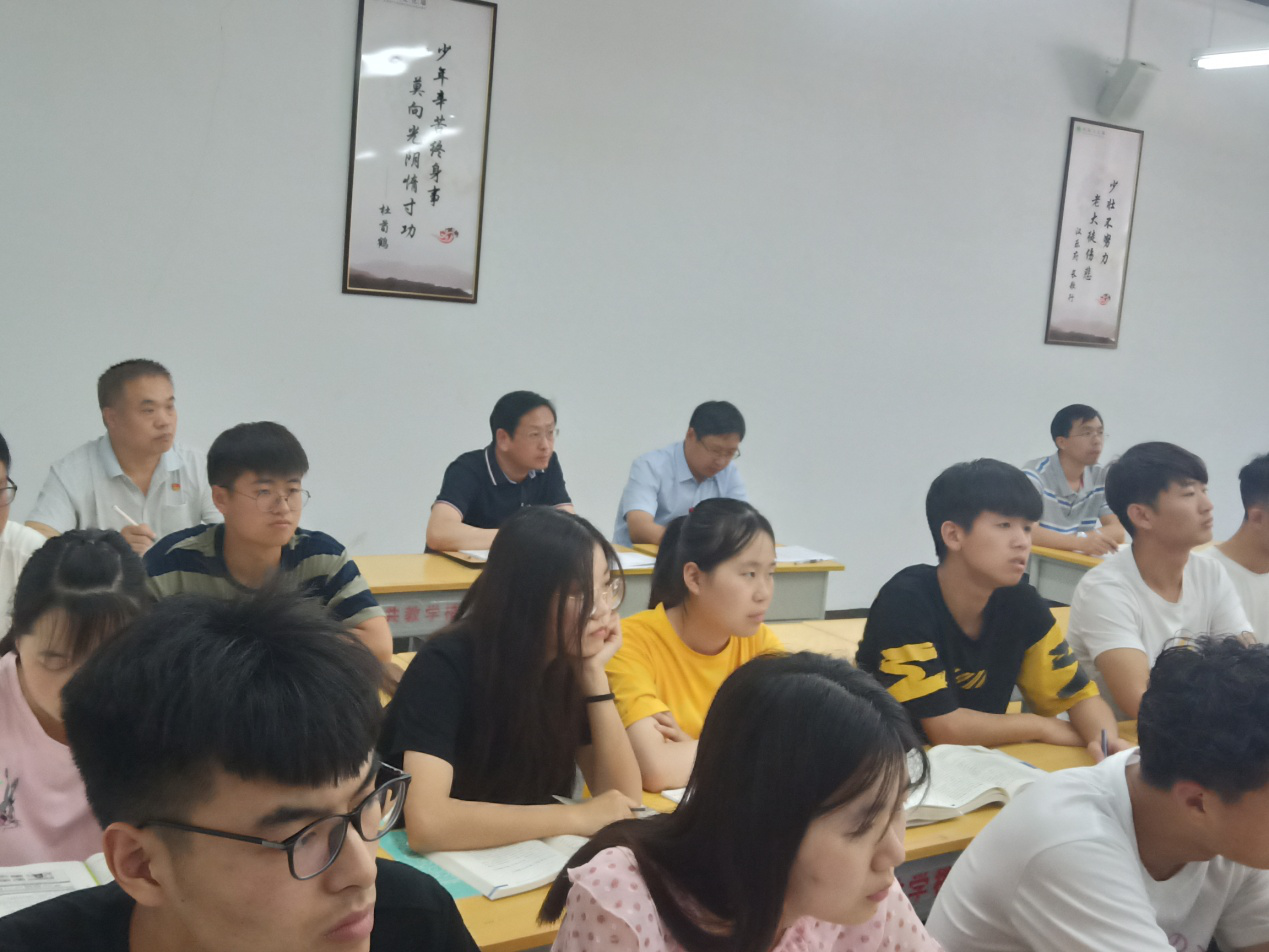 听课后,杨海强书记和韩淑杰老师进行了亲切交流,杨书记指出,一是要充分发挥“思政课程”育人主渠道、主阵地功能; 二是在讲授课程中要适当增加板书。韩淑杰老师虚心地向杨书记请教了如何上好思政课及教书育人问题,杨书记根据自己的教学经验,细心讲解了如何结合实际讲好思想政治理论课,确保思想政治理论课教育教学的实效性。