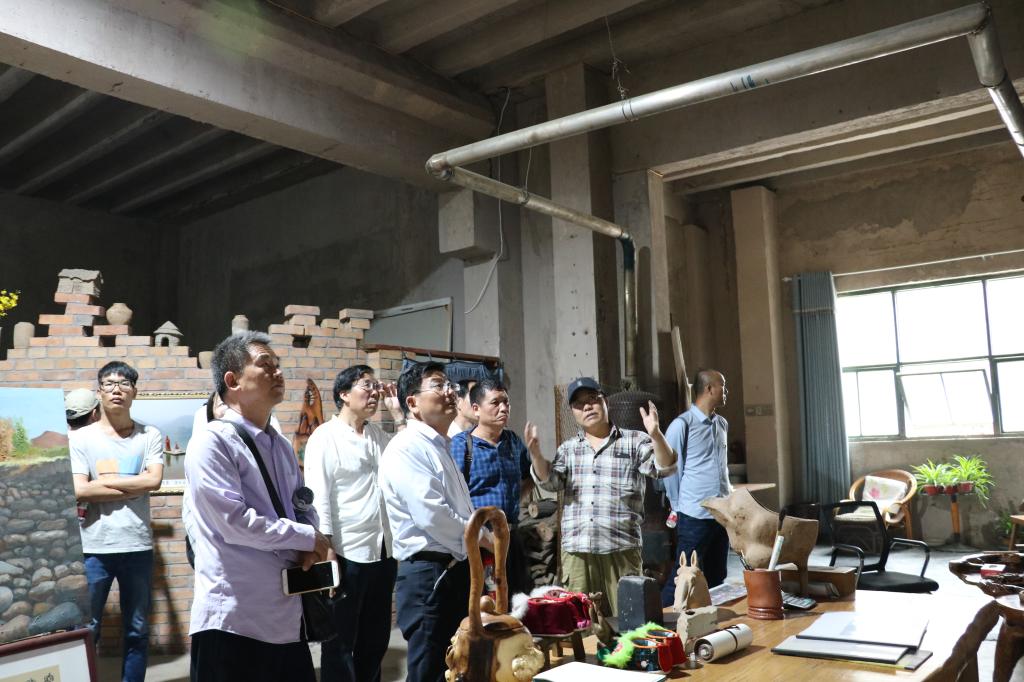 接着,大家来到了红星陶瓷体验坊,同时,这里也是中国民间工艺美术家赵宏涛的工作室。赵宏涛老师向大家介绍这里的艺术品大多来自民间,再经过艺术家的精雕细琢而成。他还说,园区风貌以陶瓷艺术为主题,集各门类艺术家,创客集驻园区,并融入智能化网络平台运营,通过各类艺术家书法展览,文化沙龙,艺术品拍卖,民俗游艺展演等系列活动,为游客带来文化艺术观赏,陶艺游乐体验,美食品尝,土特产购物等内容。这样做的目标是打造“红星小镇”,开创智享休闲的新时代,向人们提供一个文娱消费的好去处,为富美宜阳的“文化民生”,“艺术惠民”建设,以及“大众创业,万众创新”做好服务。大家向赵宏涛老师热烈交流,不时虚心请教,收获颇丰。