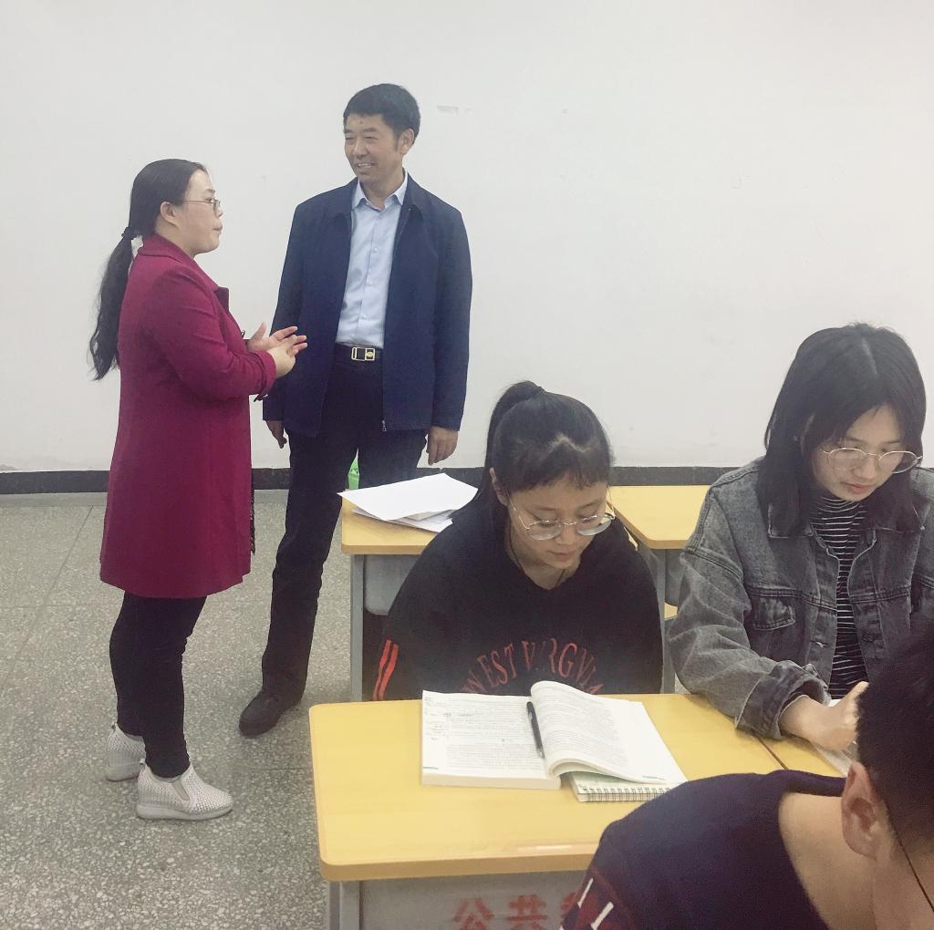 A3306教室所听课程是2016级思想政治教育专业课程《国家公务员制度概论》,由马克思主义学院教师吴建华讲授。在讲课过程中,吴老师以教学知识为主线,联系公务员制度改革的实际,与刚刚公布的《2019年国家公务员考试招考简章》和历年国家公务员考生面试真题相结合的方式进行全面讲述,并通过与学生互动形式开展教学。在G1102教室,王书记听了马克思主义学院杨正群老师给2017级数学教育1班,2班上的《马克思主义基本原理概论》课程中的“对立统一规律是唯物辩证法的实质和核心”一节,杨老师从生活中的对立讲到哲学中的矛盾,让同学们了解了生活中的对立与哲学中的矛盾的区别与联系,并引导同学们认识矛盾,分析矛盾,解决矛盾,学会矛盾分析法,树立正确的世界观和价值观。