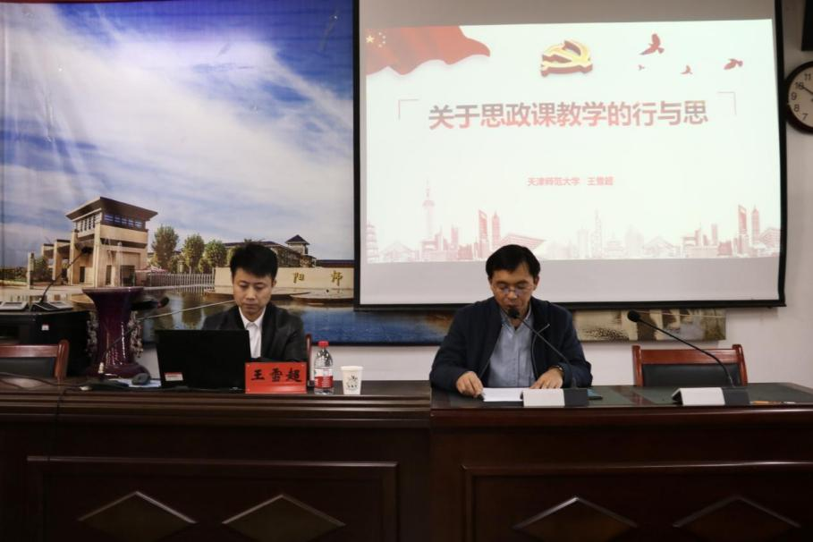 3月29日上午,全国优秀教师、全国高校思想政治理论课教学标兵、高校思想政治理论课教师2017年度影响力人物、首届全国高校思想政治理论课教学展示活动“中国近现代史纲要”课特等奖获得者、天津师范大学马克思主义学院副院长王雪超教授莅临我院,在A3-305开展了一场题为《关于思政课教学的行与思》的学术讲座。讲座由我院院长吴胜锋主持,学院全体思政课教师及部分研究生聆听了此次讲座。
