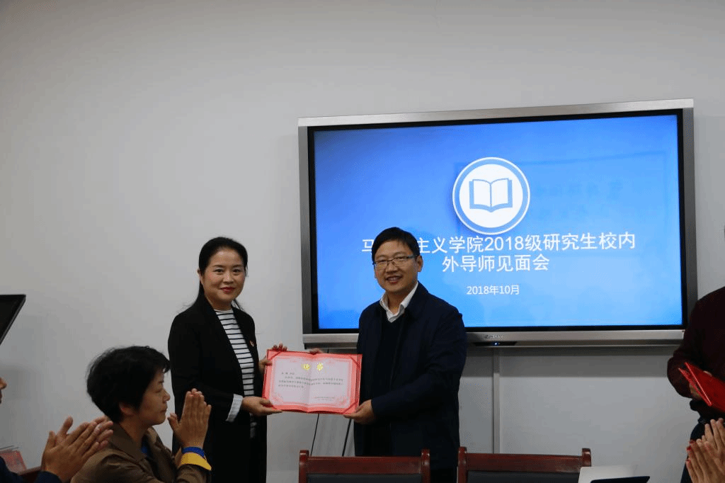 为了进一步加深老师与同学之间认识与了解,拉近师生关系,10月21日下午,我院2018年校内外导师见面会在A3-407会议室顺利召开。出席本次会议的有我院院长曹玉涛、党总支书记赵社民、副院长刘晓、吴胜锋博士、薛妙勤教授、王建设老师、张玲老师、吴秀娟老师、洛阳幼儿师范学校校长张家森、洛阳师范学院附属中学党总支书记韦忠民、洛阳市五十中学校长陈继和洛阳第一高级中学高级教师马仲宏。此次见面会由刘晓副院长主持,2018级全体研究生到场认真聆听。