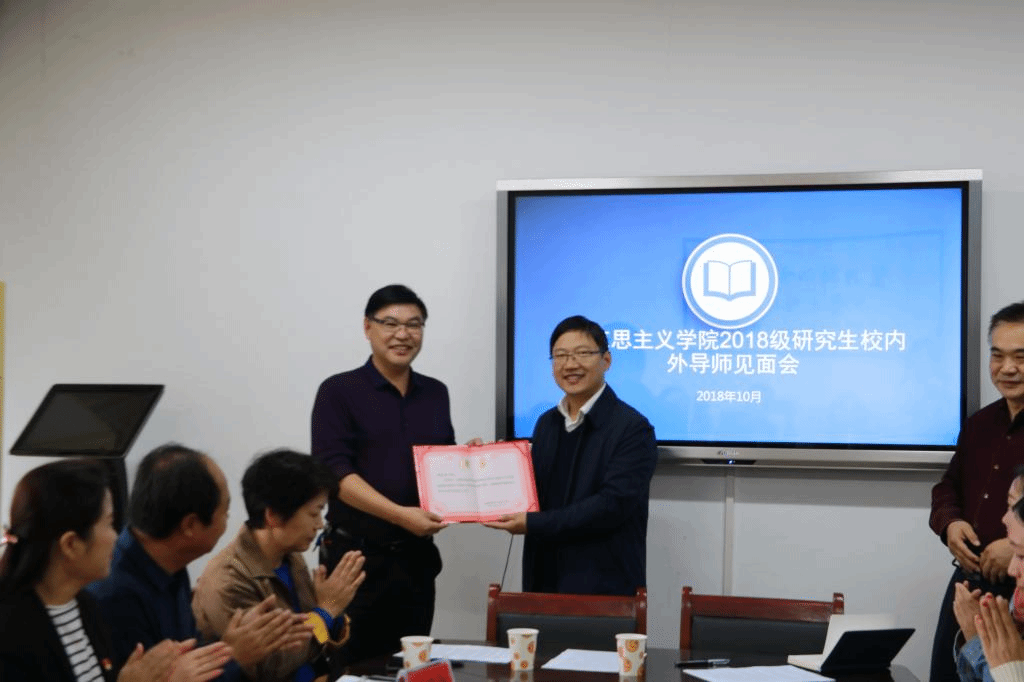 为了进一步加深老师与同学之间认识与了解,拉近师生关系,10月21日下午,我院2018年校内外导师见面会在A3-407会议室顺利召开。出席本次会议的有我院院长曹玉涛、党总支书记赵社民、副院长刘晓、吴胜锋博士、薛妙勤教授、王建设老师、张玲老师、吴秀娟老师、洛阳幼儿师范学校校长张家森、洛阳师范学院附属中学党总支书记韦忠民、洛阳市五十中学校长陈继和洛阳第一高级中学高级教师马仲宏。此次见面会由刘晓副院长主持,2018级全体研究生到场认真聆听。