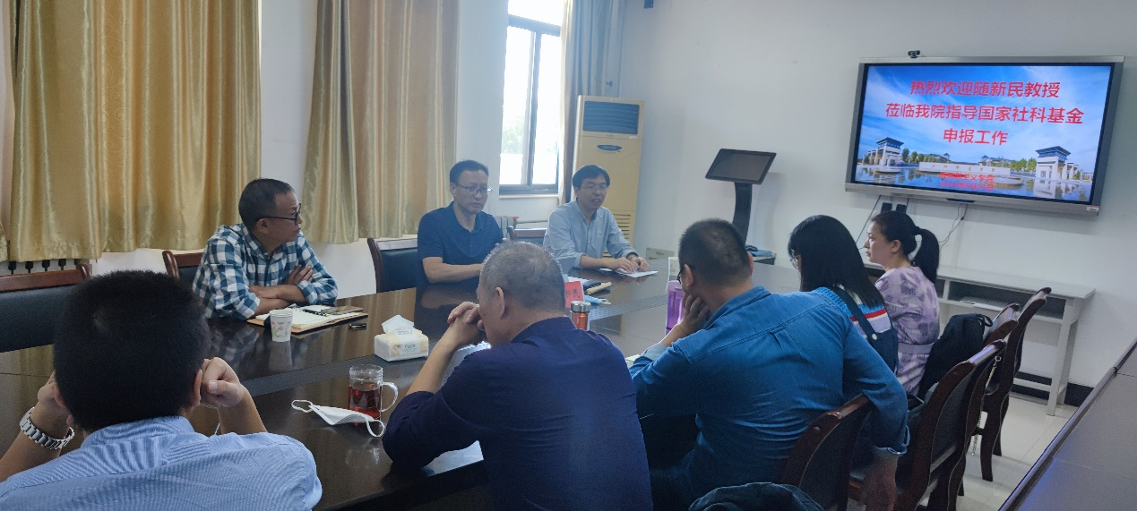 为了进一步提高我院2023年国家社科项目申报的质量与水平,9月29日上午,我院特邀中原工学院马克思主义学院院长随新民教授来校进行国家社科基金项目申报的指导。会议在A3-407会议室进行,我院院长吴胜锋主持会议,副院长牛子宏及11位博士教师参会。
