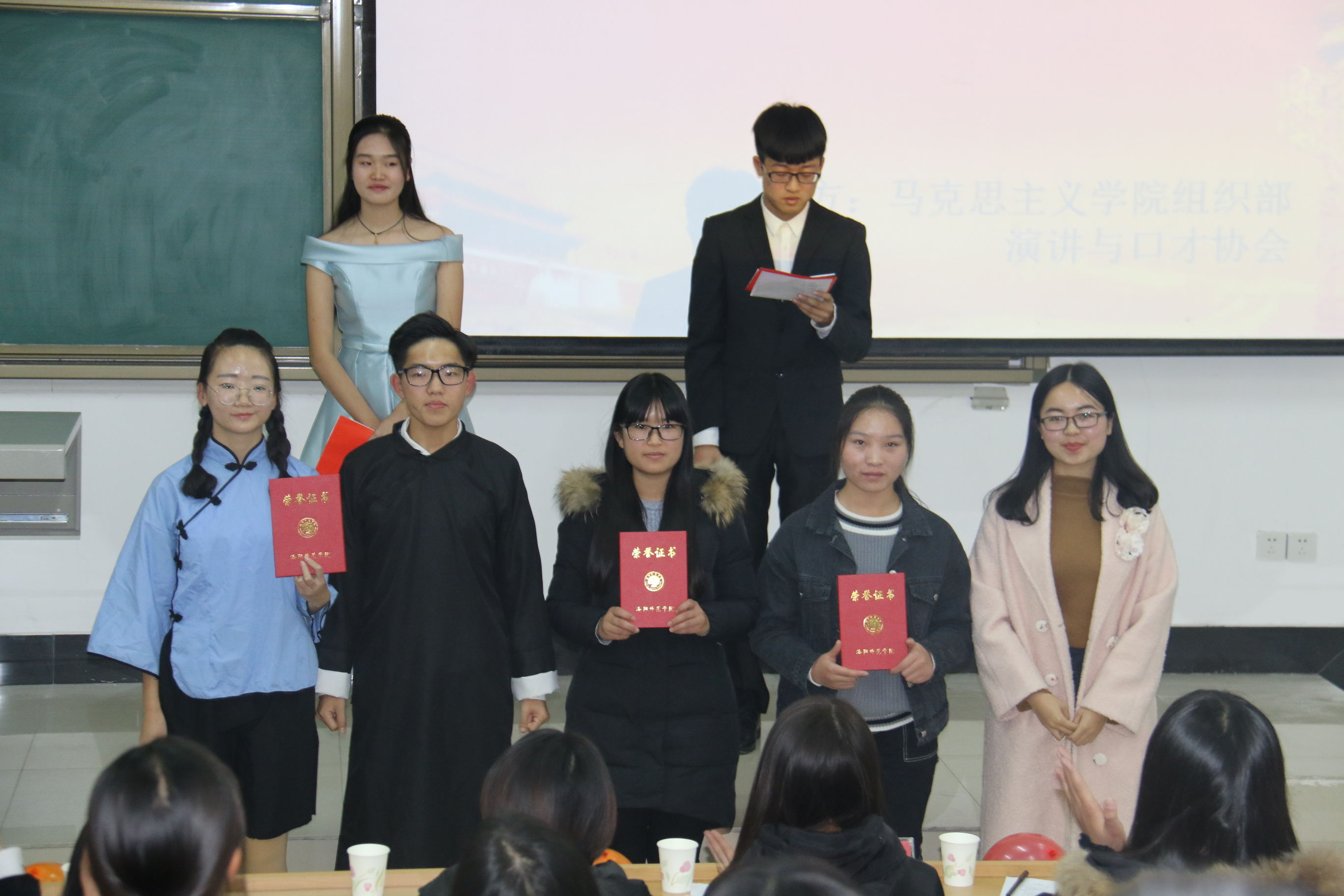 本次比赛,选手们围绕“诵红色经典,抒爱国豪情”这一主题,献上了形式多样的朗诵作品,纪念一二·九运动82周年。比赛开始后,十五位选手以饱满激昂的语言、大方得体的举止,把自己的爱国之情表达得淋漓尽致。其中,选手赵瑞的《那年那日》的朗诵,通过重温一二·九运动,展示了当代青年不负重托,坚定前行的坚定志向;马欣欣与李浩然两位选手的朗诵《青春中国》,用高亢的声音传达了对革命先烈的深深缅怀之情;选手刘田园的《苦难孕育的中华儿女》诉说了中国青年学生对祖国的热爱和甘为祖国献身的决心。选手们充满激情和富有感染力的朗诵和表演,赢得了观众热烈的掌声。经过激烈的比拼,赵瑞《那年那日》的朗诵脱颖而出,夺得本次大赛的桂冠。最后,评委们给获奖选手颁奖并集体合影留念。