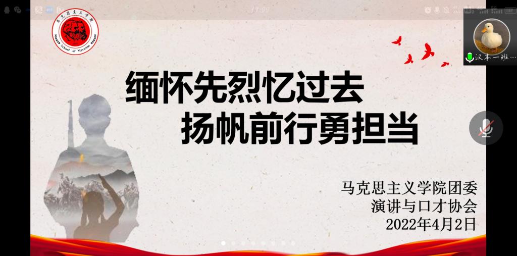 4月2日晚,我院组织部联合演讲与口才协会以线上方式举办“缅怀先烈忆过去,扬帆前行勇担当”主题演讲比赛决赛。