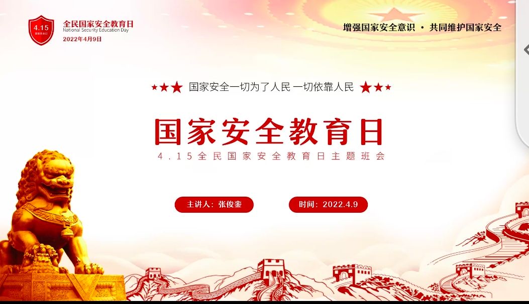 4月9日,我院在2020、2021级中集中开展“国家安全教育日”主题班会,各班同学参加会议。