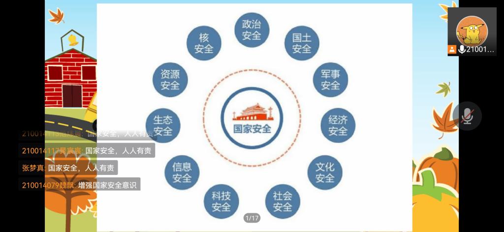 2021级班长着重讲到,我国社会主要矛盾已经转化为人民日益增长的美好生活需要和不平衡不充分的发展之间的矛盾,人民美好生活需要日益广泛,对物质文化生活提出了更高要求,在这样的现实情况下,我们应当更加全面地维护国家安全。同学们纷纷表示,要增强维护国家安全的风险意识、使命意识,为维护国家安全作出应有的贡献。