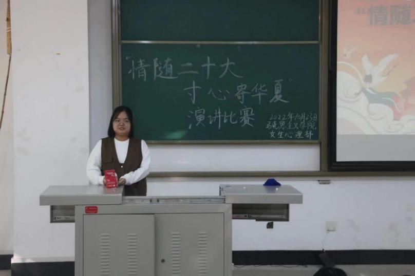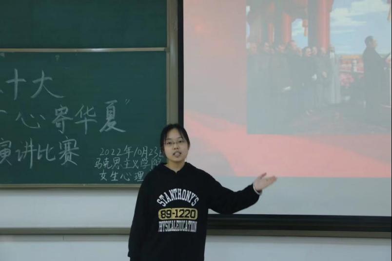 10月23日下午,我院女生心理部在A3-114教室举办“情随二十大,存心寄华夏”主题演讲比赛。21级、22级学生积极参加。