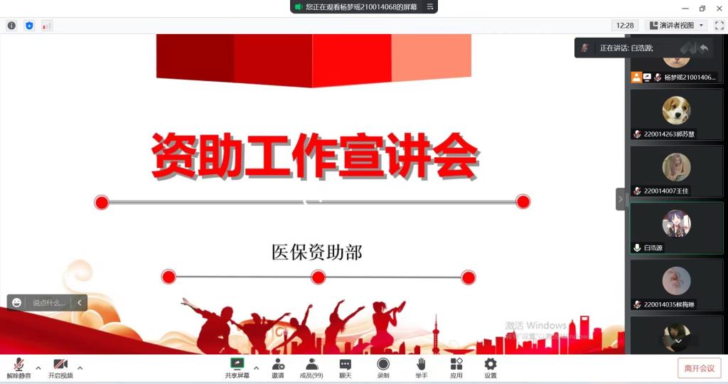 为进一步做好学生资助政策宣传工作,加深新生对我院资助政策的了解,同时提高风险防范意识和法律意识,10月28日晚,我院开展线上资助工作与校园金融安全知识宣讲会,本次宣讲会由我院医保资助部副部长杨梦瑶主持,2022级全体学生参加。
