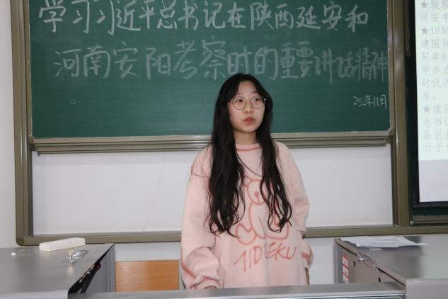 11月3日下午,我院在A3-306教室召开了“学习习近平总书记在延安和安阳考察时的重要讲话精神”学习分享会,永信班全体成员、22级部分学生干部积极到场参加。