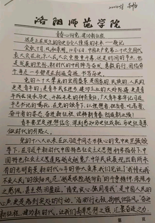 志以赤血沃春花,与党同梦逐韶华。10月27日至11月2日,我院学习部组织开展了以“二十岁遇上党的二十大——青春正当时,筑梦向未来”为主题的征文比赛,我院学生积极参加。