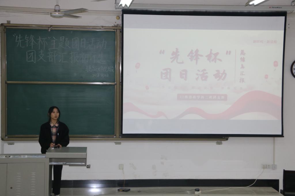 在本次“先锋杯”团日活动中,我院各团支部围绕“青春践行二十大,志愿奉献正当时”的主题开展了特色鲜明形式多样的团日活动。2021级、2022级各团支部汇报人依次对此次团支部的“先锋杯”团日活动进行分享汇报。各团支部以朗诵、情景剧、小合唱等形式进行团日活动,展示各支部在学习贯彻党的二十大精神、学习习近平新时代中国特色社会主义思想等方面的良好教育实践成果。其中,22级二班团支部积极创新,开展了情景经典朗诵、“击鼓传花,看图猜红词”等一系列独具特色的活动。最后,陈安琦对本次活动进行总结,对主题鲜明、丰富多样的团日活动表示赞许,并在汇报形式等方面提出改进建议,鼓励同学们再接再厉继续创新。