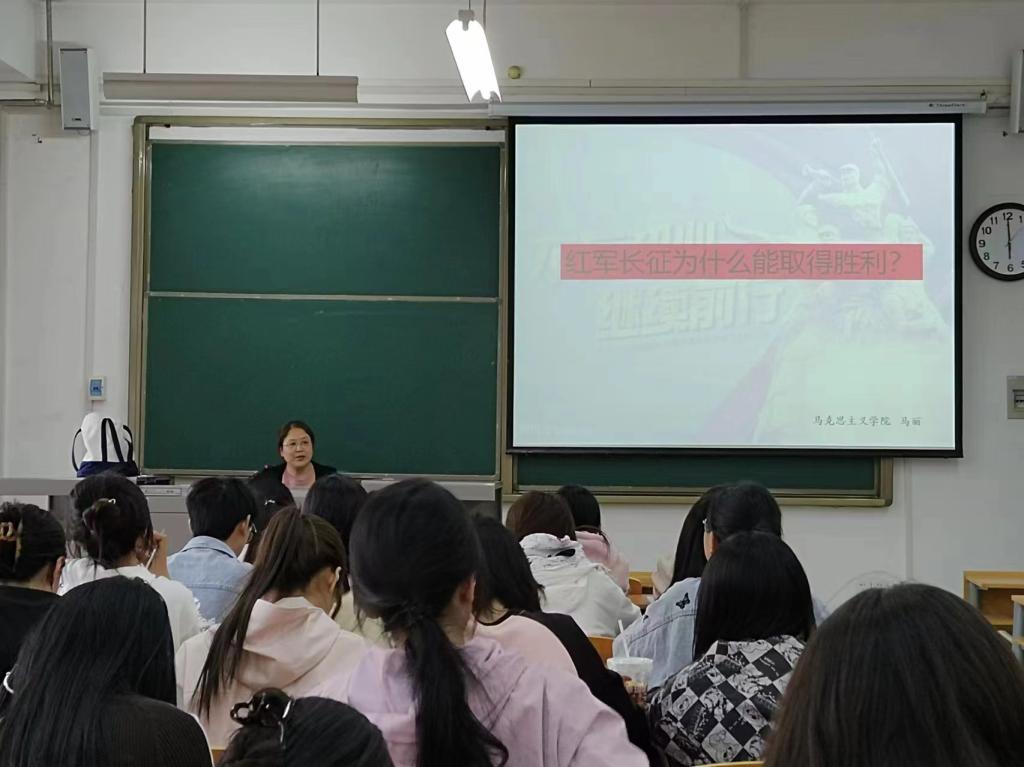 马丽以“红军长征为什么能取得胜利”为题,为同学们深刻剖析了红军长征胜利的多方面原因。马丽讲到,红军长征之所以能够取得胜利,正是因为他们具有坚定的理想信念以及不怕艰难险阻、一切从实际出发、顾全大局的宝贵精神。因为有了信仰,他们才能爬雪山、过草地,越过重重艰险,蹚出胜利之路。立足新时代,马丽强调我们要在党的领导下,大力弘扬伟大长征精神,在新的长征路上继续奋勇前进。