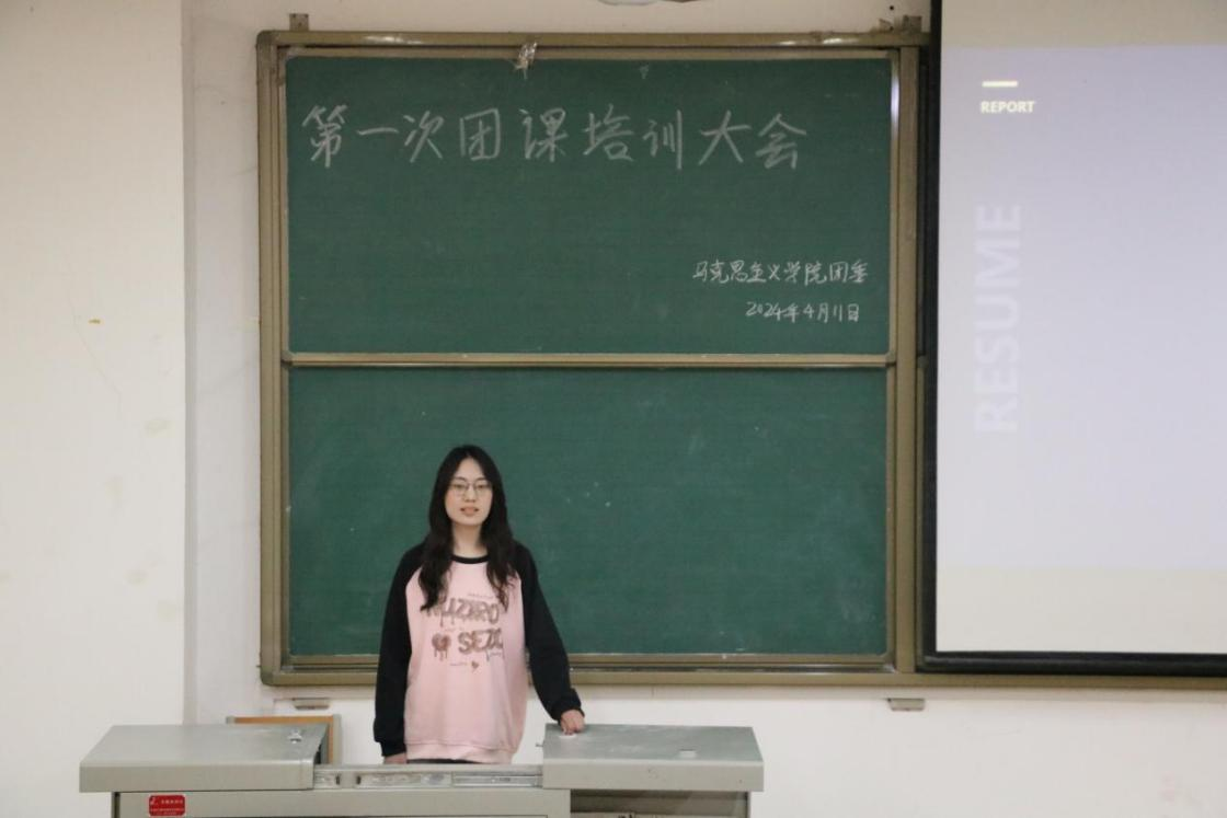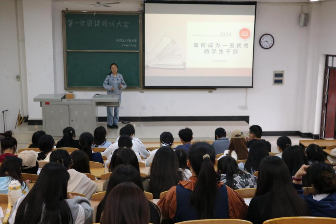 4月11日下午,我院在A3-114教室举办团课培训。学院优秀团干代表姚嘉琪、郭怡爽担任此次培训主讲人,2023级全体学生干部积极参训。