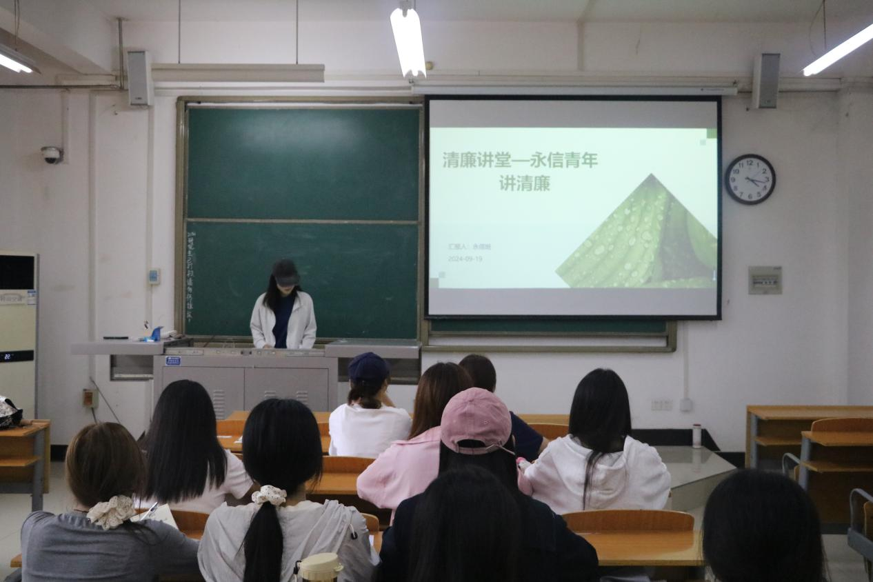 9月19日下午,马克思主义学院永信班在A3-307开展第二期“青廉讲堂”活动。此次活动由永信班班长冯兰云主持,永信班全体学员参加。