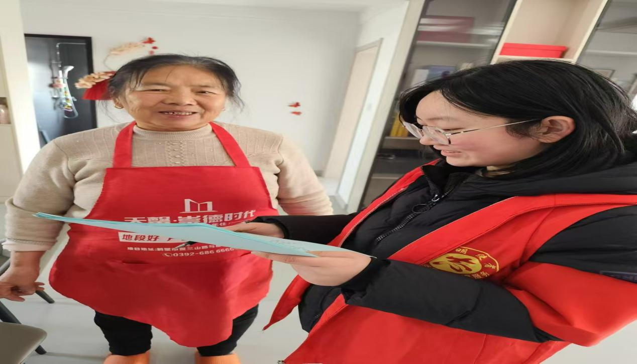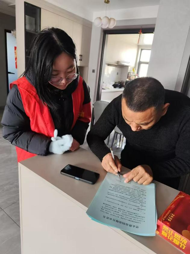 在2025年寒假期间,问礼书院3号学生社区2411团支部的姬好用实际行动践行着新时代青年的担当,满怀热忱地投身于河南省鹤壁市淇滨区朝歌里社区的禁燃禁放实践活动当中。1月14日至今,姬好与志愿者伙伴们仿若冬日里的暖阳,穿梭于社区的各个邻里之间,将一幅幅写有禁燃标语的横幅挂起,张贴一张张醒目的宣传海报,让禁燃禁放的理念融入社区的每一处角落。走进居民家中,姬好耐心地向居民们讲解禁燃禁放对于减少空气污染、守护社区安全的重大意义。她认真引导居民填写禁燃禁放调查表,仔细聆听并收集大家的想法与建议。
