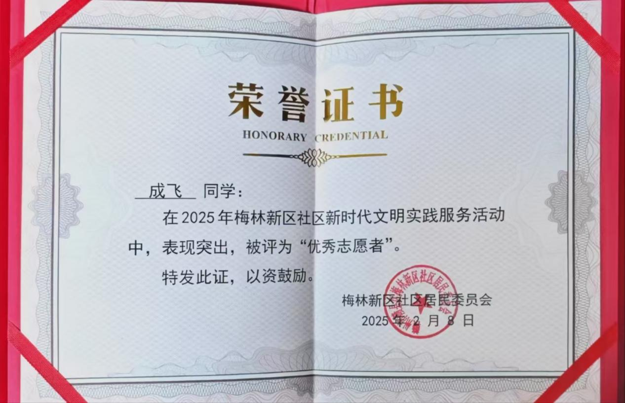 以志愿之光,暖冬日邻里。成飞积极响应家乡号召,投身于赣县区青年志愿者协会和梅林新区社区组织的多项志愿服务活动中,度过了一个充实而有意义的寒假生活。在新时代文明实践中心,他耐心辅导孩子们完成寒假作业,采用趣味互动的方式,激发他们的学习兴趣,帮助他们养成良好的学习习惯。在迎新年送对联活动时,他与其他志愿者一起为居民书写春联,将新春的祝福传递到每一户家庭。同时,他还参与夜间社区消防安全检查,仔细排查隐患,为居民能平安过年保驾护航。