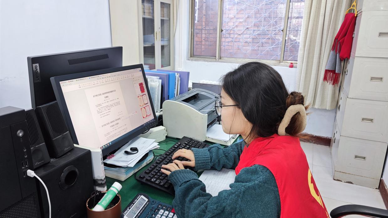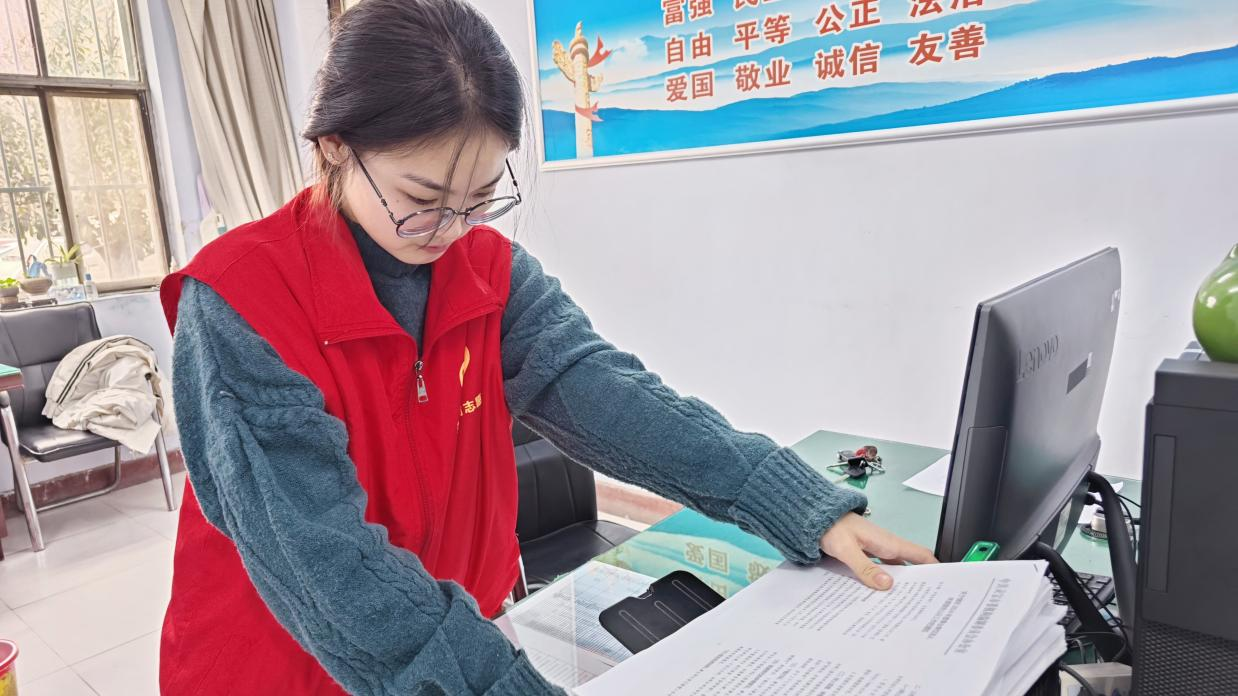 新春志愿行,温暖乡村情。新春佳节之际,王玉卓来到罗家村村委会,化身暖心志愿者,协助村委会开展办公室资料整理工作。面对堆积如山的文件资料,王玉卓明白看似简单的资料整理工作,实则需要极大的耐心与细心。她对各类文件进行分类,按照年份、主题逐一区分,每一份文件她都认真查看、仔细甄别,确保分类准确无误。在整理过程中,她还运用所学的办公软件知识,将纸质资料电子化,建立详细的电子目录,方便后续查询与调用。