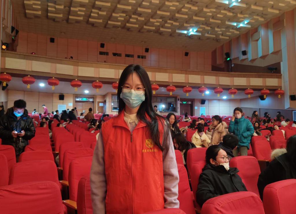 寒假返回家乡后,阮士珂积极响应当地团委的号召,参与了“殷都家·家殷都”2025殷都区职工春节联欢会的志愿服务活动。在殷都区团委书记和工作人员的悉心指导下,她与一群志同道合的志愿者们共同投入到了紧张而充实的筹备工作中。联欢会筹备期间,阮士珂主要负责场地布置与后台协助。从搬运物资、摆放道具,到调试设备、引导观众,她都以高度的责任心和严谨的态度去完成每一项任务。面对现场人数众多、秩序混乱等挑战,她始终保持冷静,耐心指引,确保联欢会有序进行。