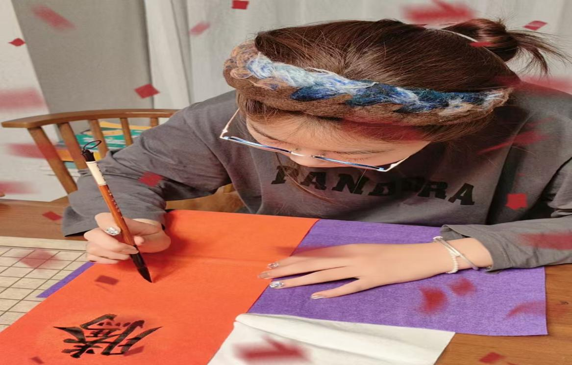 2025年寒假,袁梦积极参与安阳市秀水社区“翰墨迎新春・青春暖乡邻”写春联送温暖活动。活动前,袁梦和同学们精心筹备,准备好红纸、毛笔、墨汁等用品。活动当天,大家挥毫泼墨,一幅幅饱含吉祥寓意的春联跃然纸上,这些春联不仅装点了社区居民的家门,也营造出浓厚的节日氛围。看着居民们收到春联时脸上洋溢的笑容,袁梦内心满是成就感。