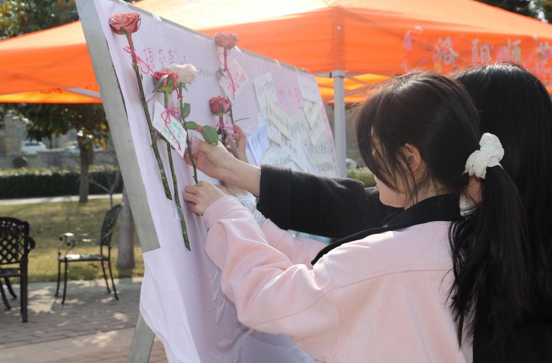 3月8日上午,书院社区携手马克思主义学院洛阳红女子服务团,在桃园生活服务广场开展“与她同行”主题活动。在“她”健康宣传环节,志愿者们耐心科普女性健康知识,组织参与健康生活体验活动,倡导健康、积极向上的生活方式;在“她”力量宣扬时,引导大家打破对女性的“传统标签”,现场不少同学拿起笔,写下充满力量的话语,展现出女生的自强与自信;最后,在“玫瑰夸夸墙”前,师生们用温暖语句为“她”点赞,并收到了带有鼓励标语的玫瑰花束。