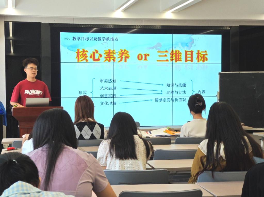 活动现场,三位师范技能竞赛获奖者化身“成长引路人”,从不同专业维度倾囊相授。文学院王梓涵以课文《猫》为例,系统讲解了教学设计、课堂呈现和板书设计的核心要点;外国语学院赵雨歆结合自身参赛经历,详细解析了从赛前准备、教案设计到临场应变的全流程经验;美术与艺术设计学院罗乔治结合新课标要求,分享了如何将核心素养培养融入课堂教学,通过情境创设实现知识传授与价值引领的有机统一。