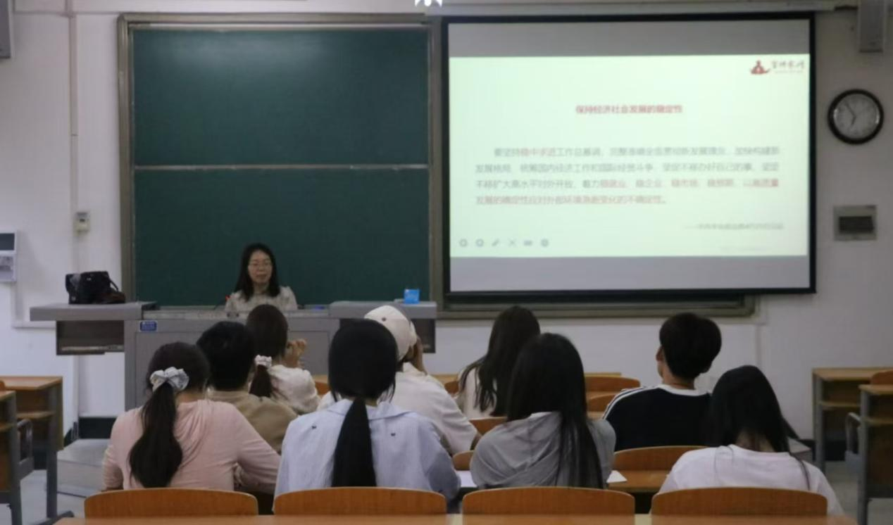 5月28日,我院副教授朱先平在A3-306教室以“学习贯彻2025年全国两会精神”为主题开展理论讲座,永信班全体成员参加。