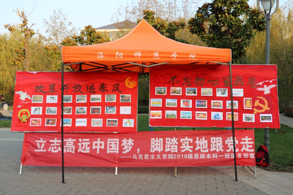 拳拳爱国之心,笔笔红色传递。11月23日下午,我院2018级思想政治教育本科一班面向全校师生,在桃园广场开展“改革开放送春风,不忘初心成画卷”主题展板展出活动。