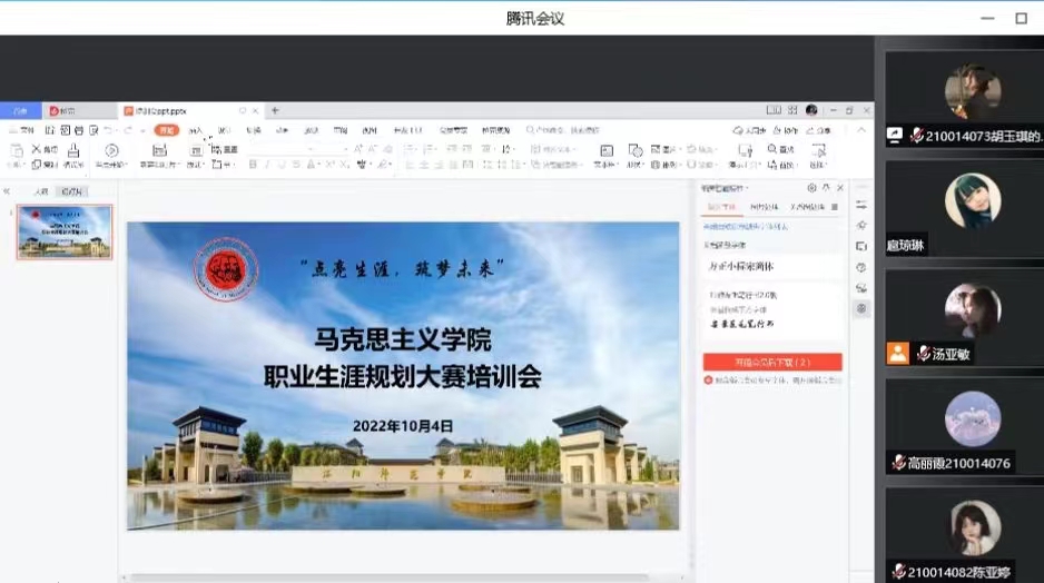 10月4日,我院通过腾讯会议召开职业生涯规划大赛培训会。本次培训会由2021年职业生涯规划大赛获奖者主讲,2020级、2021级部分同学积极参会并认真记录。