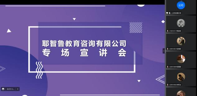 12月4日下午,我院举办洛阳耶智鲁教育咨询有限公司专场线上宣讲会。本次会议由洛阳耶智鲁教育白净老师主持,我院学子积极参会。